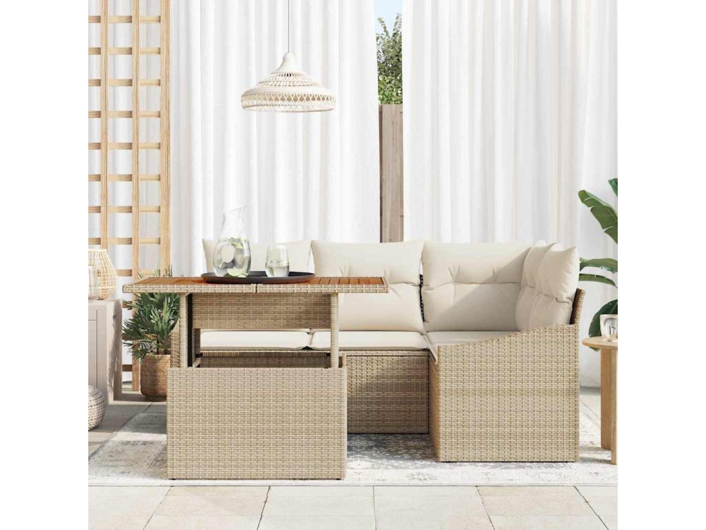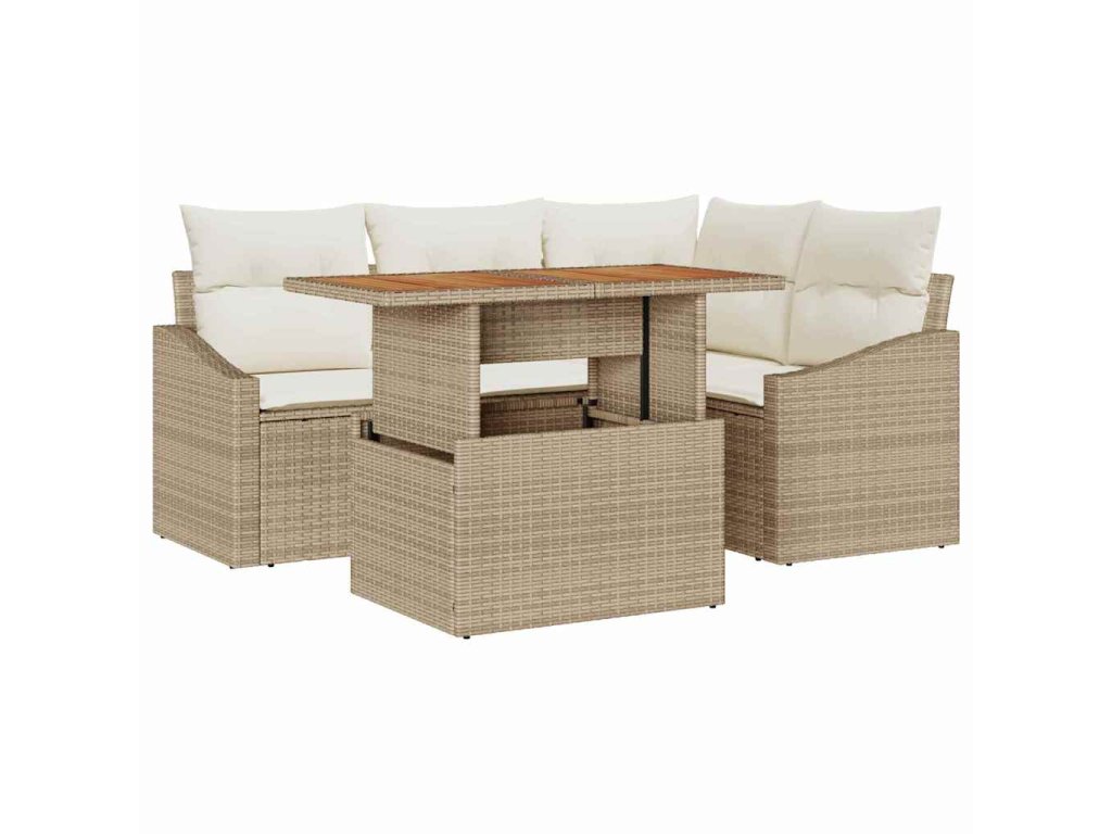 Sada zahradních pohovek s úložištěm 5 pcs Béžová Poly ratan
