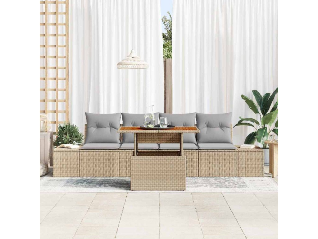 Sada zahradních pohovek s úložištěm 5 pcs Béžová Poly ratan