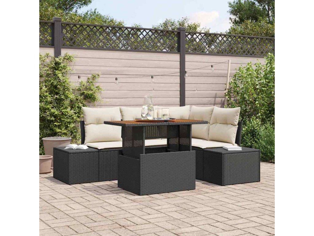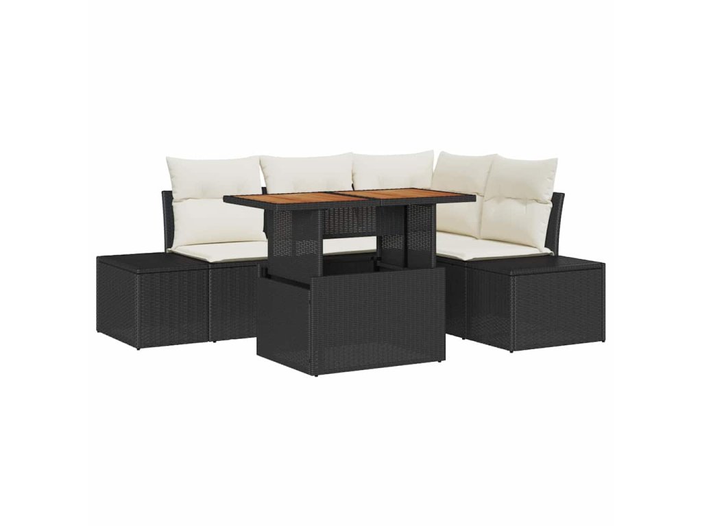 Sada zahradních pohovek s úložištěm 5 pcs Černá Poly ratan