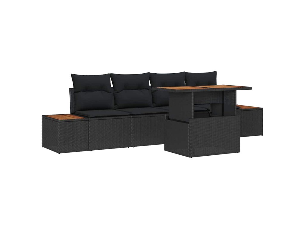 Sada zahradních pohovek s úložištěm 5 pcs Černá Poly ratan