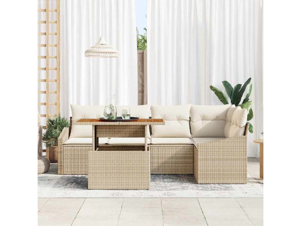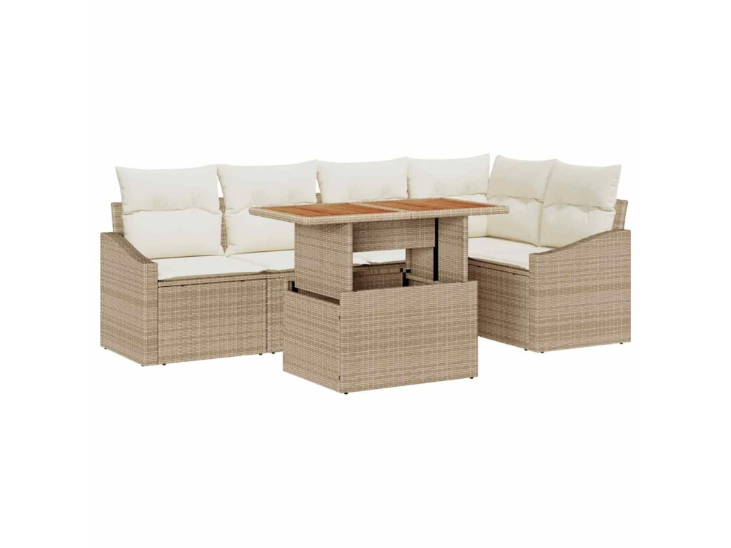 Sada zahradních pohovek s úložištěm 6 pcs Béžová Poly ratan