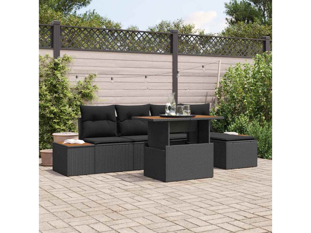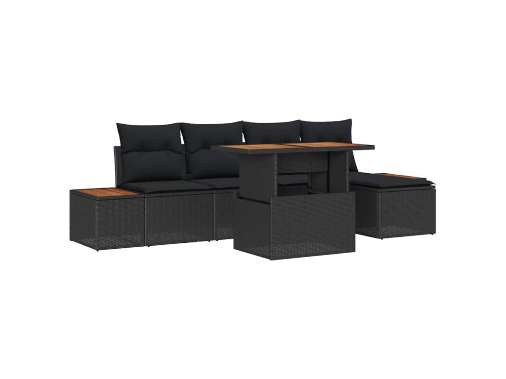 Sada zahradních pohovek s úložištěm 6 pcs Černá Poly ratan