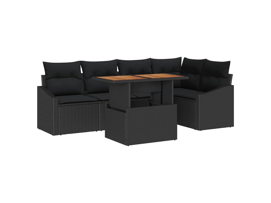 Sada zahradních pohovek s úložištěm 6 pcs Černá Poly ratan