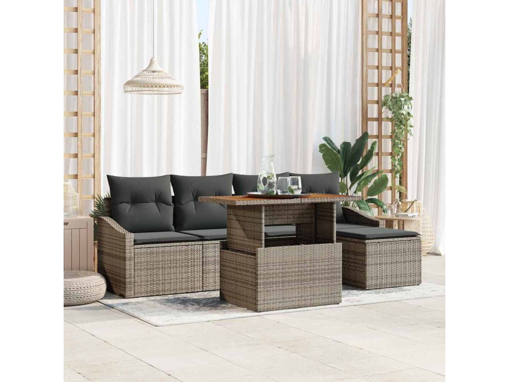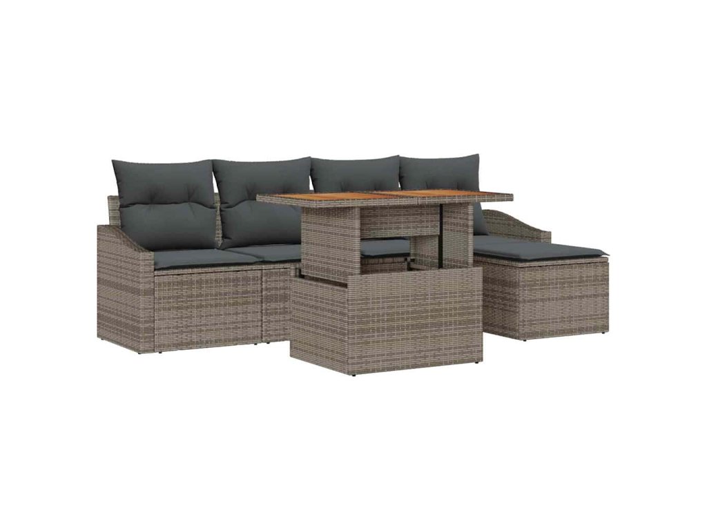 Sada zahradních pohovek s úložištěm 6 pcs Šedá Poly ratan