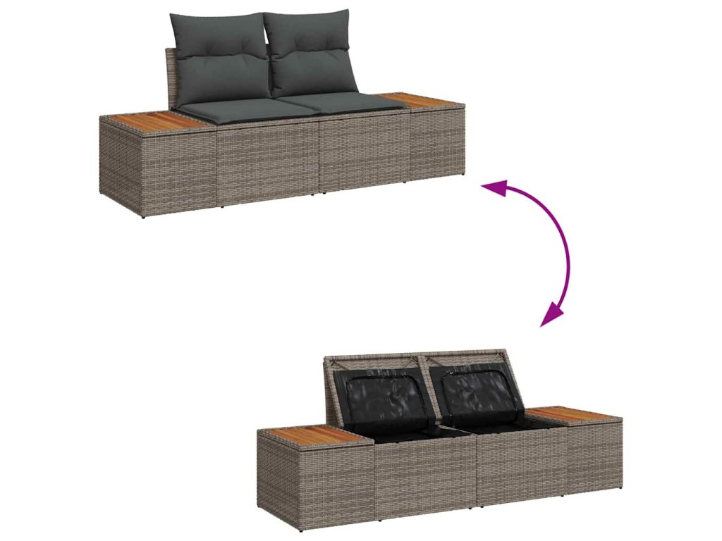 Sada zahradních pohovek s úložištěm 6 pcs Šedá Poly ratan