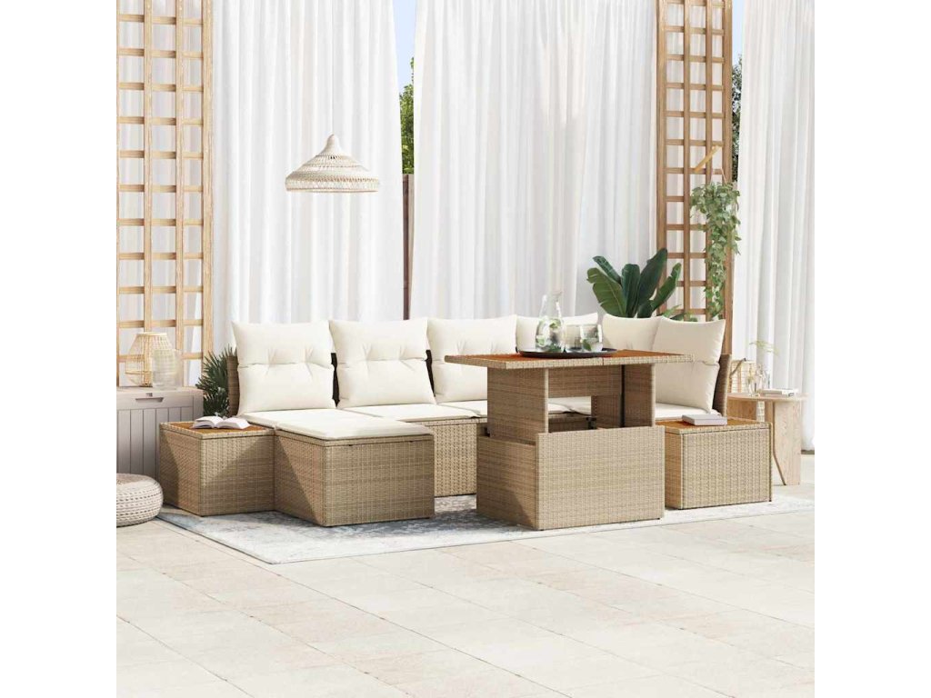 Sada zahradních pohovek s úložištěm 7 pcs Béžová Poly ratan