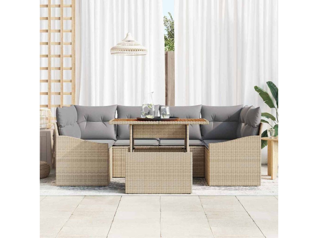 Sada zahradních pohovek s úložištěm 7 pcs Béžová Poly ratan