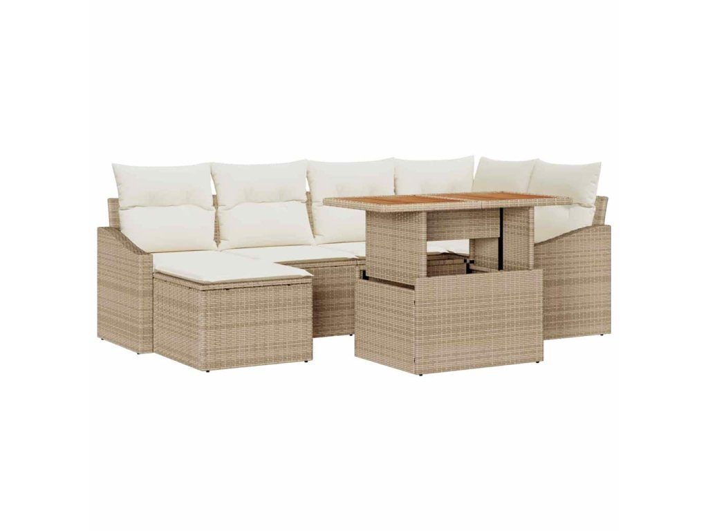 Sada zahradních pohovek s úložištěm 7 pcs Béžová Poly ratan