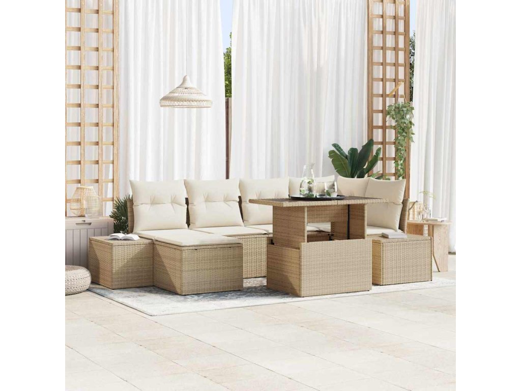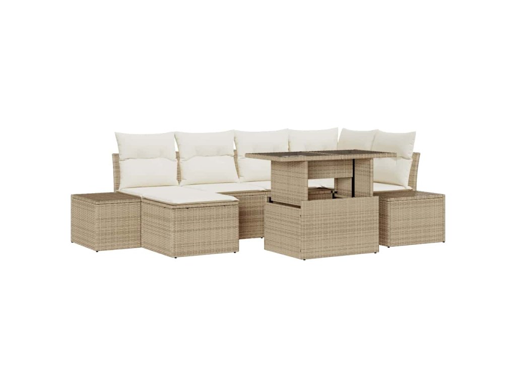 Sada zahradních pohovek s úložištěm 7 pcs Béžová Poly ratan