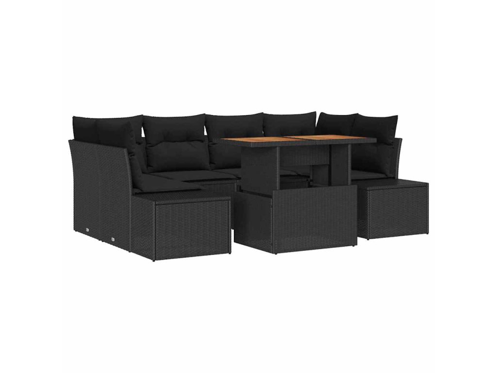 Sada zahradních pohovek s úložištěm 7 pcs Černá Poly ratan