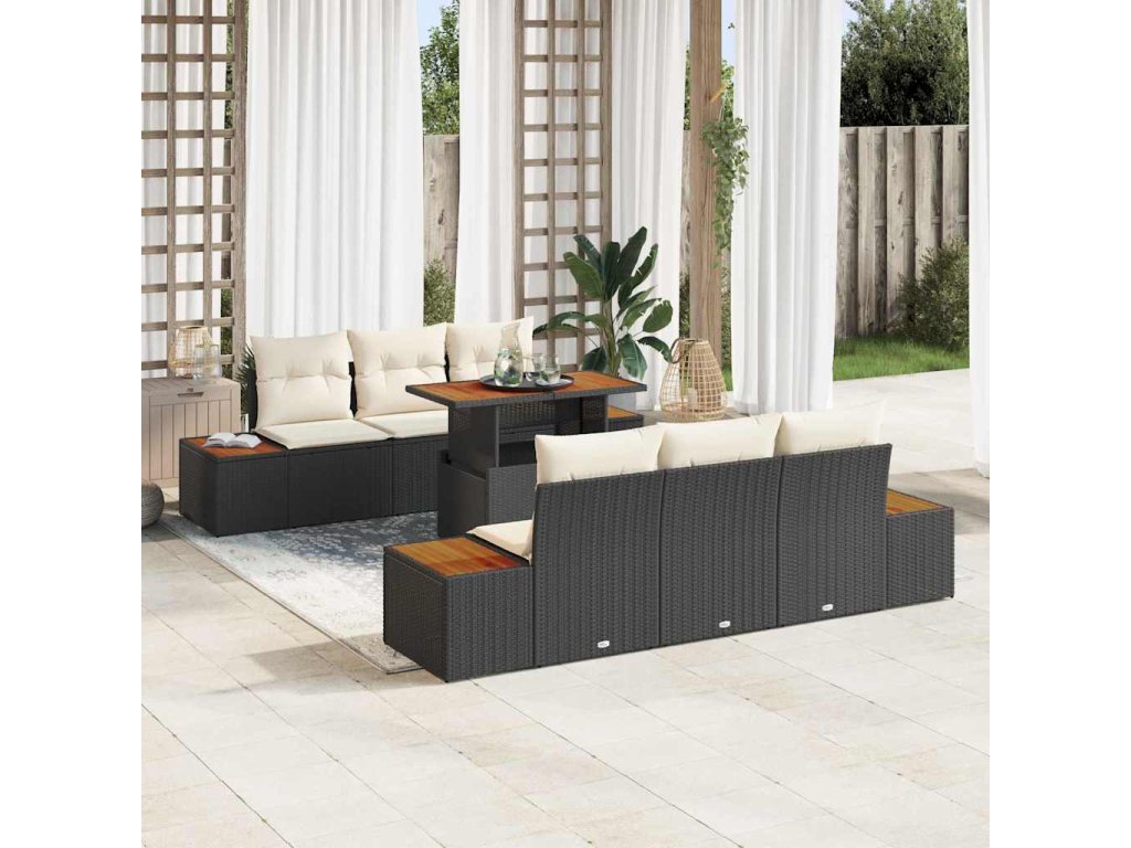 Sada zahradních pohovek s úložištěm 7 pcs Černá Poly ratan
