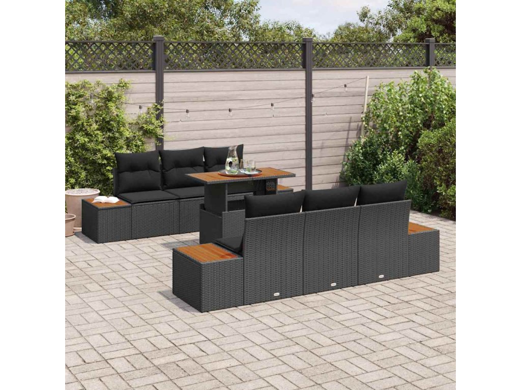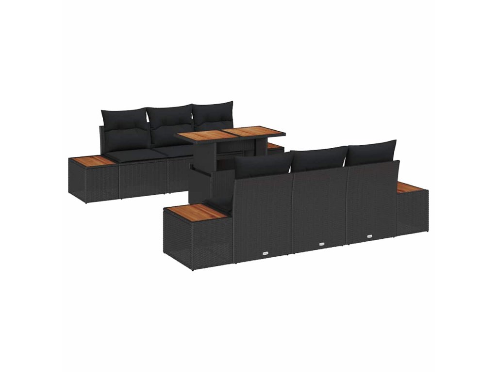 Sada zahradních pohovek s úložištěm 7 pcs Černá Poly ratan