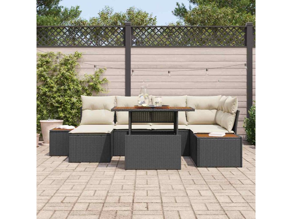 Sada zahradních pohovek s úložištěm 7 pcs Černá Poly ratan