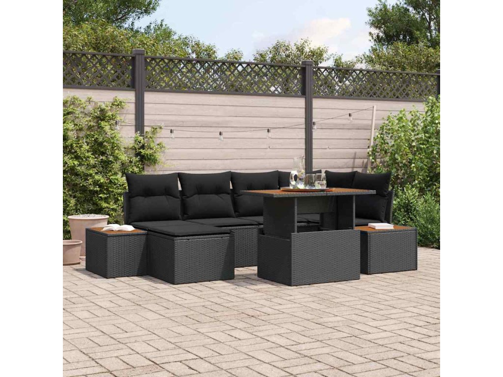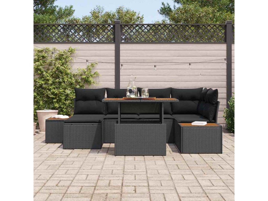 Sada zahradních pohovek s úložištěm 7 pcs Černá Poly ratan