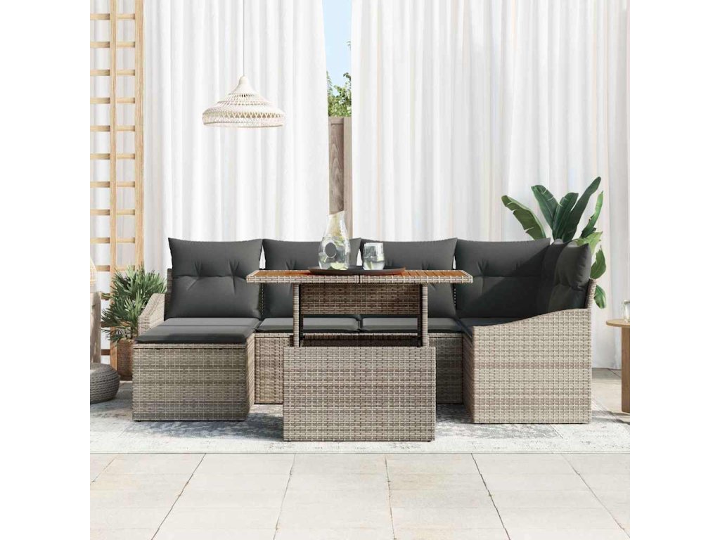Sada zahradních pohovek s úložištěm 7 pcs Šedá Poly ratan