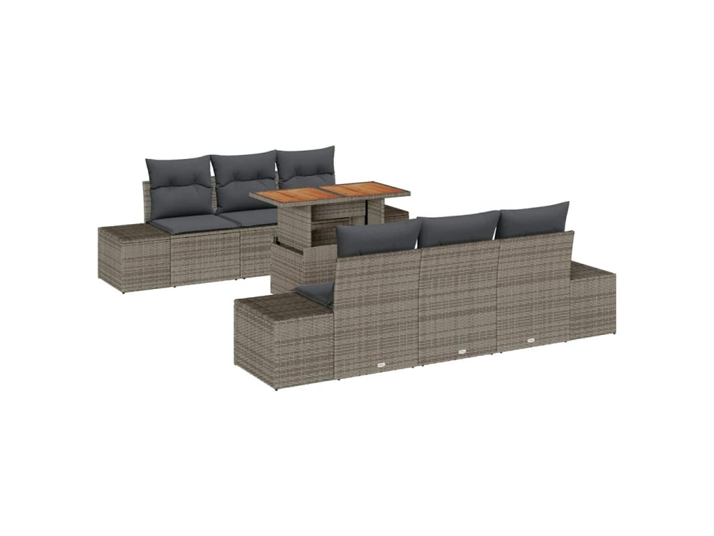 Sada zahradních pohovek s úložištěm 7 pcs Šedá Poly ratan