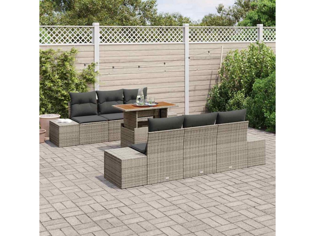 Tahle zahradní pohovková sada vypadá skvěle a přidává moderní eleganci každému venkovnímu prostoru. Je perfektní na letní sezení na terase nebo na klidné večery na zahradě a nabízí ti styl a pohodlí. Obdélníkový tvar s matným povrchem se hodí ke všem stylům dekorace a texturovaný poly rattan dodává teplý, příjemný pocit. Je to univerzální gauč, který skvěle poslouží rodinám a na zábavu, snadno se přizpůsobí různým situacím. Prostorný a pevný, určitě vytvoří spoustu šťastných vzpomínek na sluníčku.