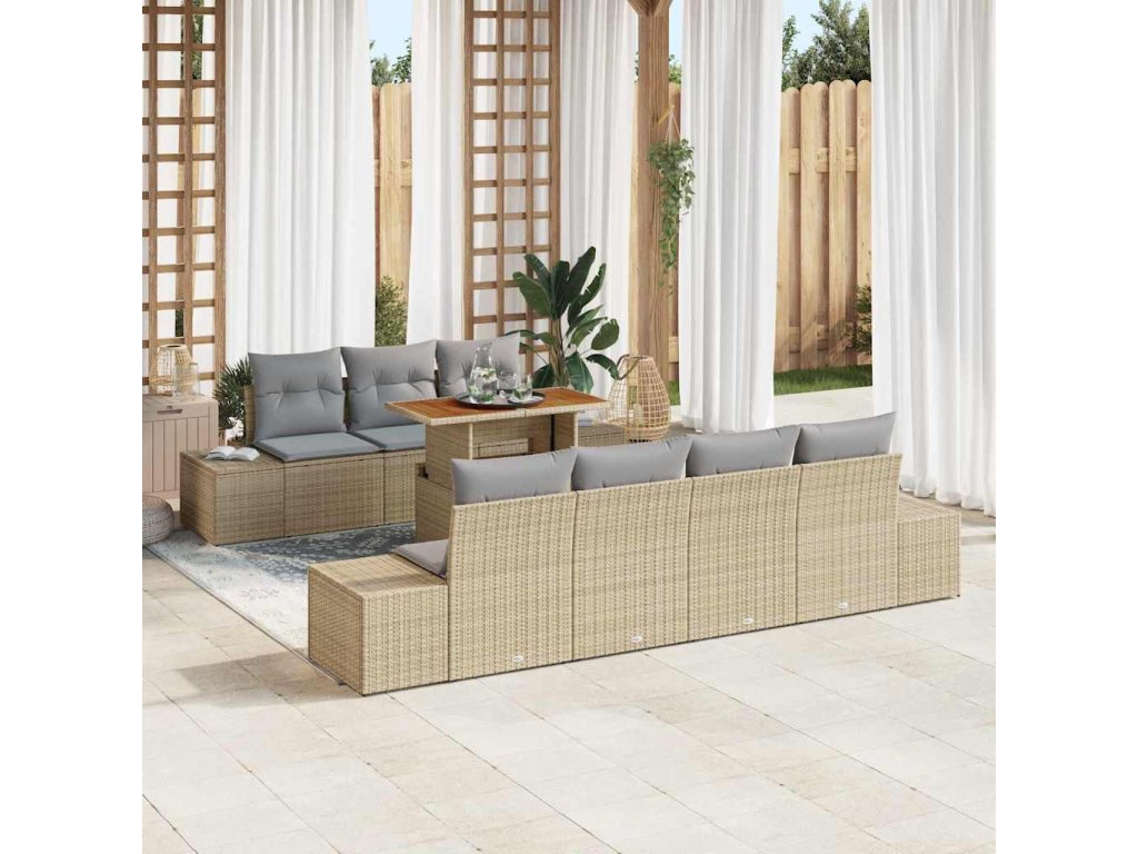 Sada zahradních pohovek s úložištěm 8 pcs Béžová Poly ratan