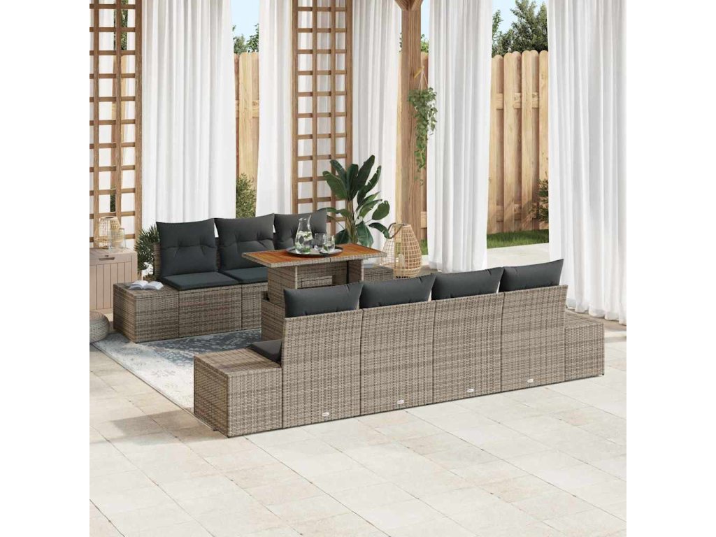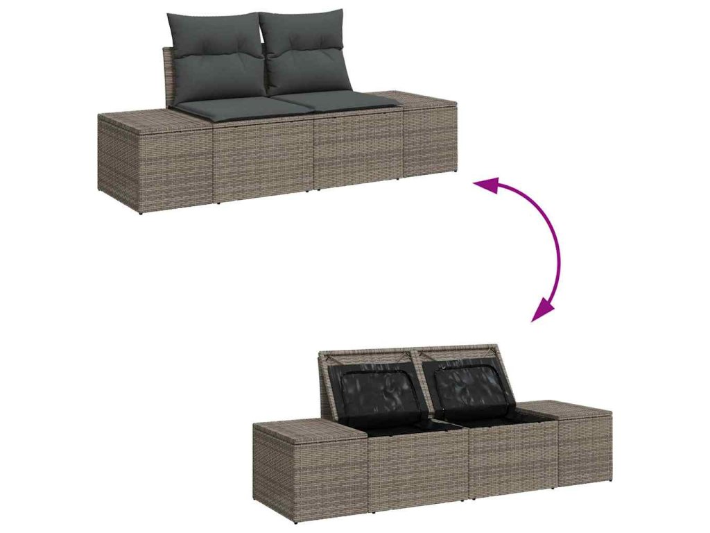 Sada zahradních pohovek s úložištěm 8 pcs Šedá Poly ratan