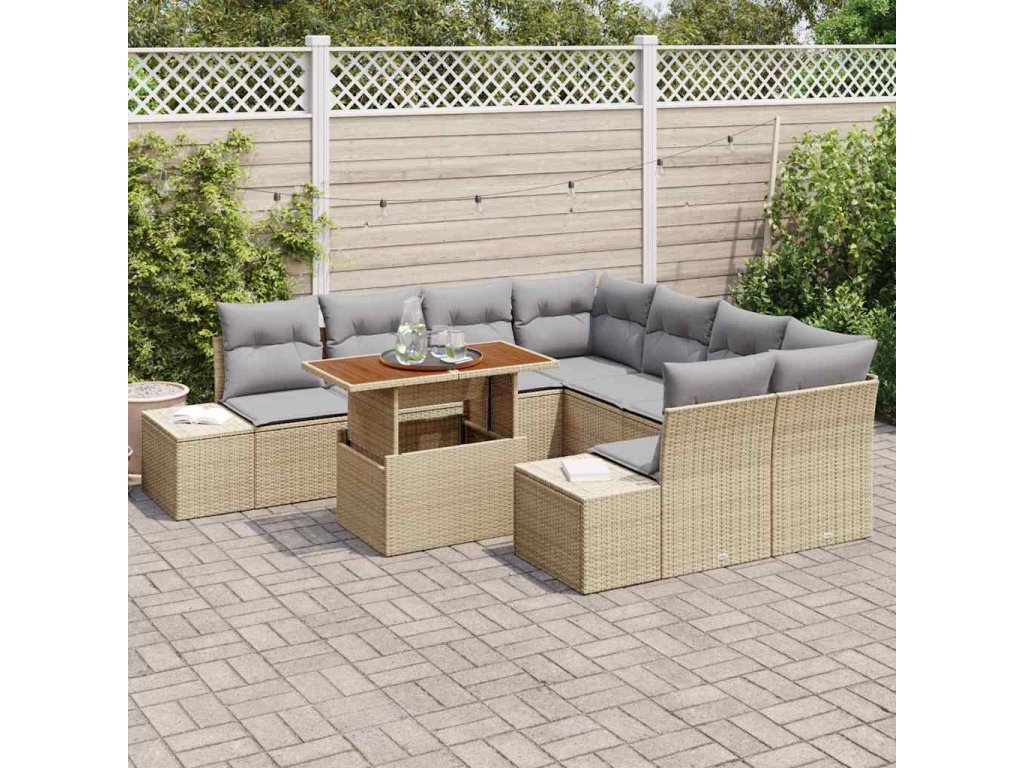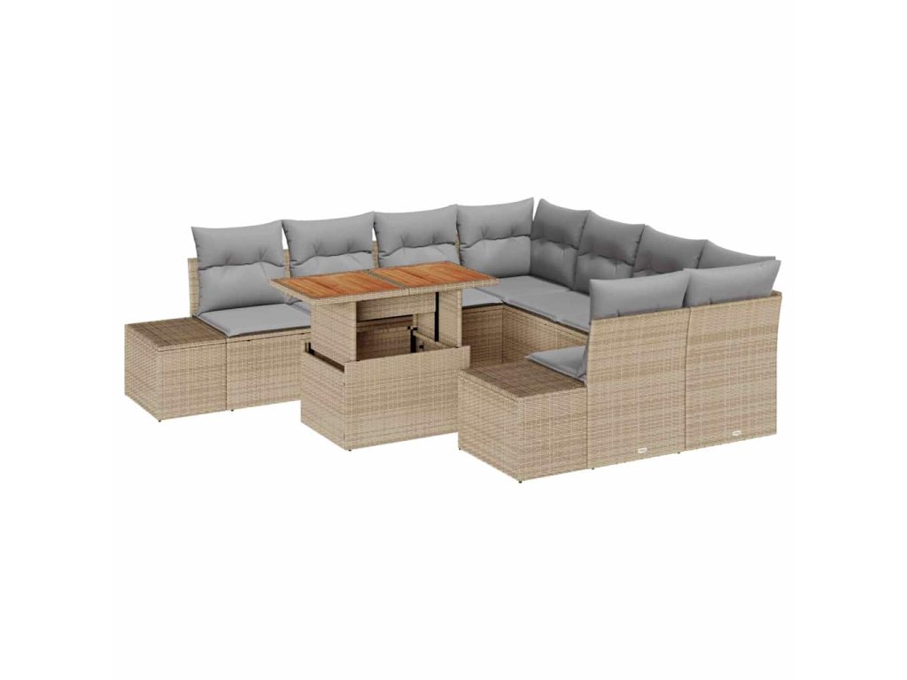 Sada zahradních pohovek s úložištěm 9 pcs Béžová Poly ratan