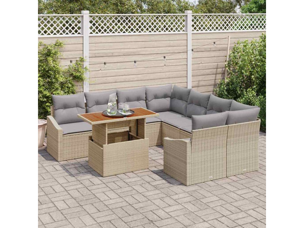 Sada zahradních pohovek s úložištěm 9 pcs Béžová Poly ratan