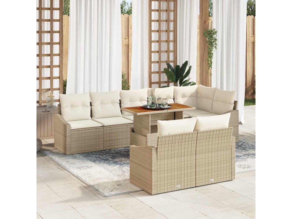 Sada zahradních pohovek s úložištěm 9 pcs Béžová Poly ratan
