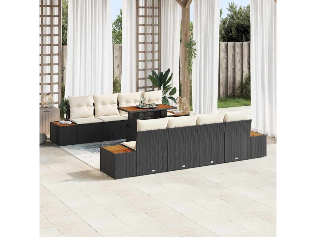 Sada zahradních pohovek s úložištěm 9 pcs Černá Poly ratan