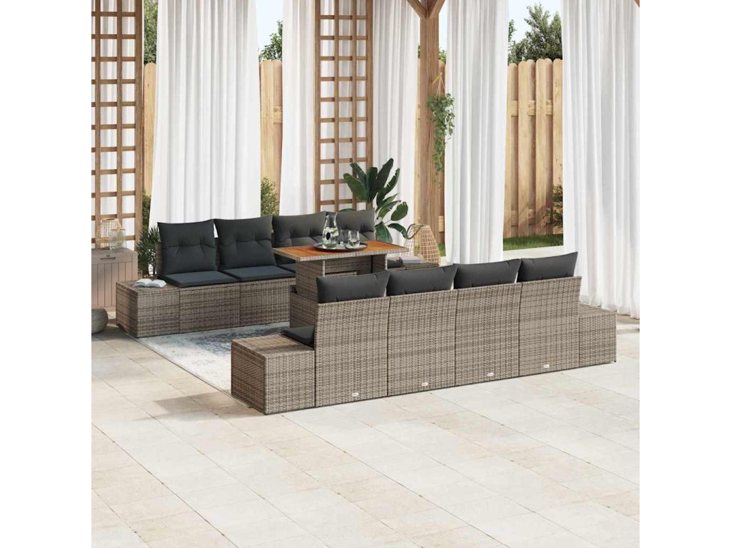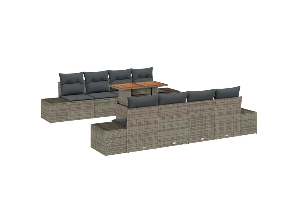 Sada zahradních pohovek s úložištěm 9 pcs Šedá Poly ratan