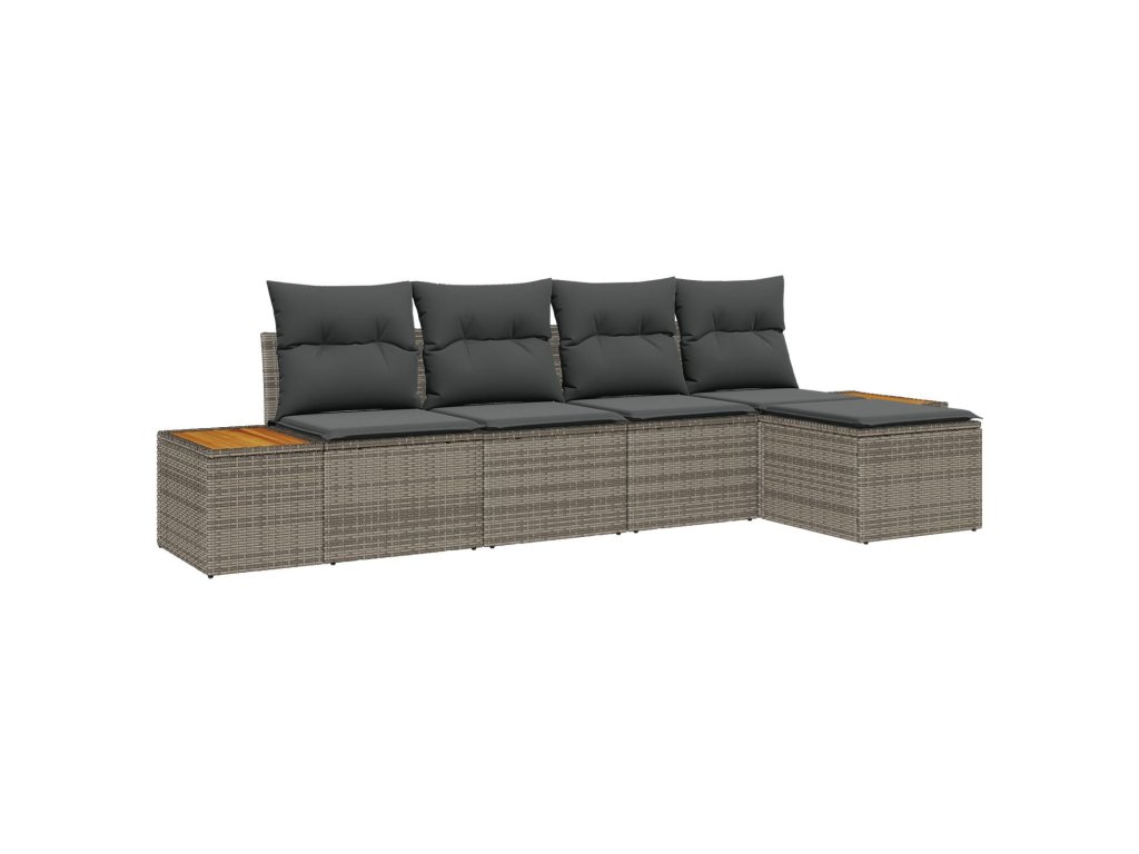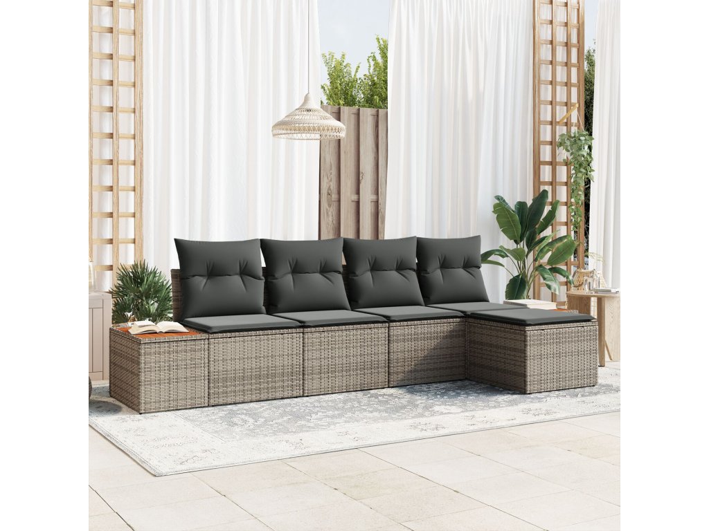 Sada zahradních pohovek s polštářem 5 pcs Šedá Poly ratan