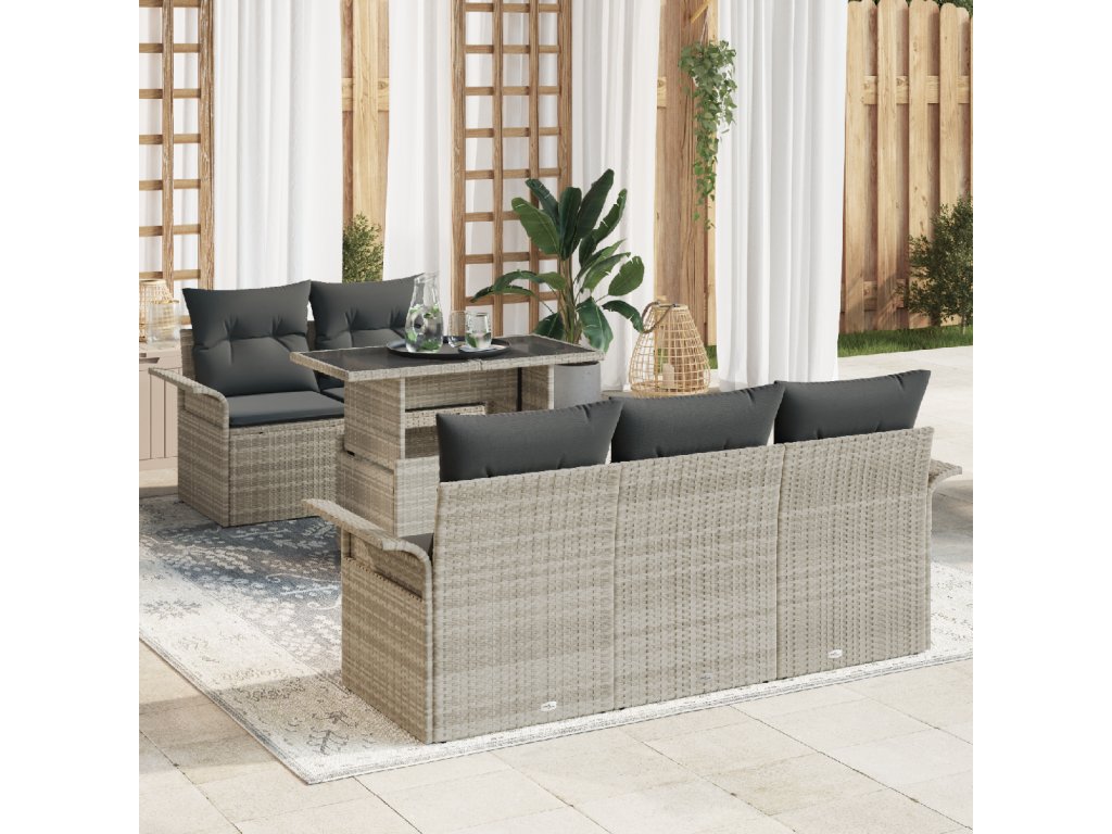 Sada zahradních pohovek s polštářem 6 pcs Světle šedá polyratan