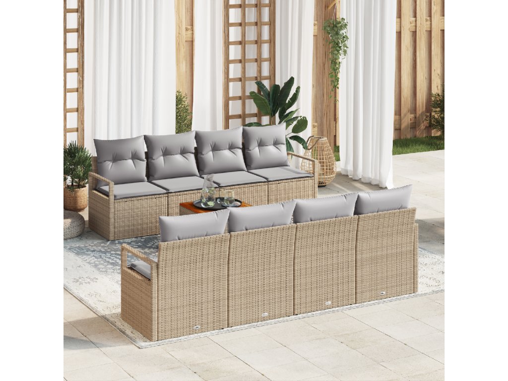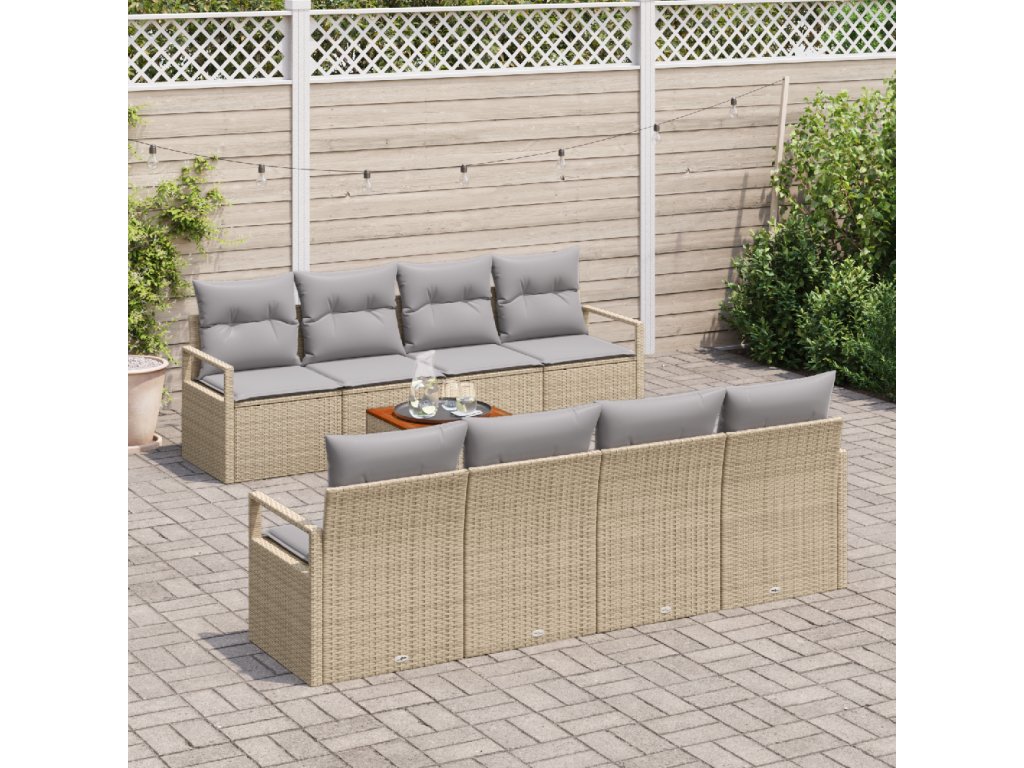 Sada zahradních pohovek s polštářem 9 pcs Béžová Poly ratan