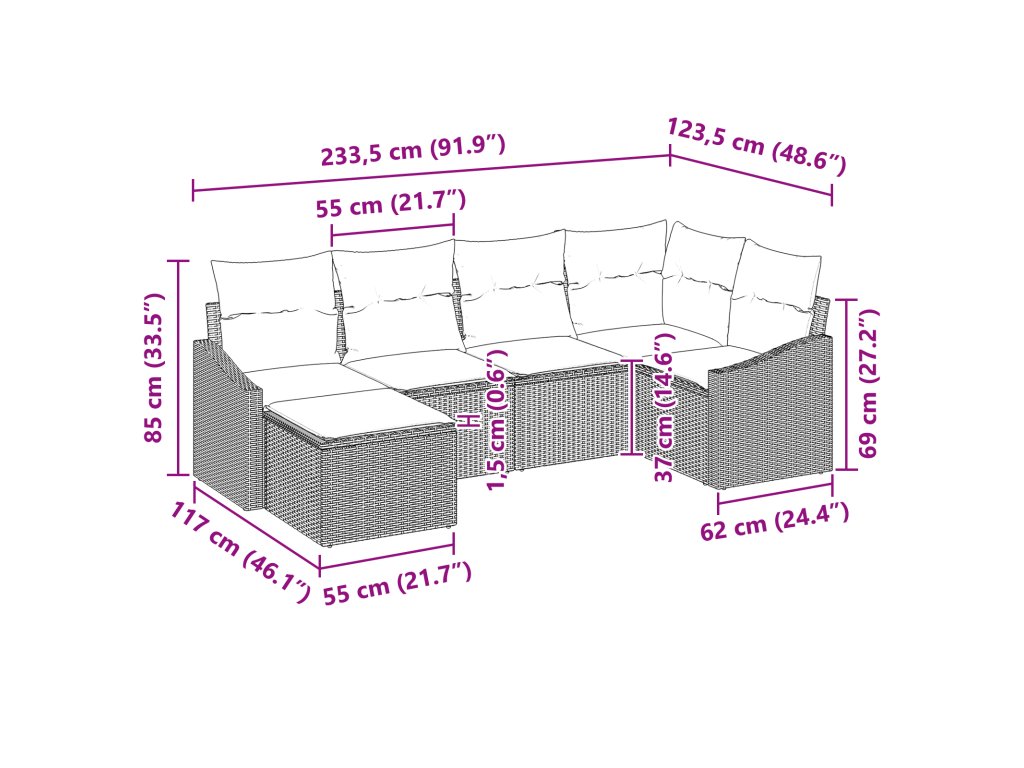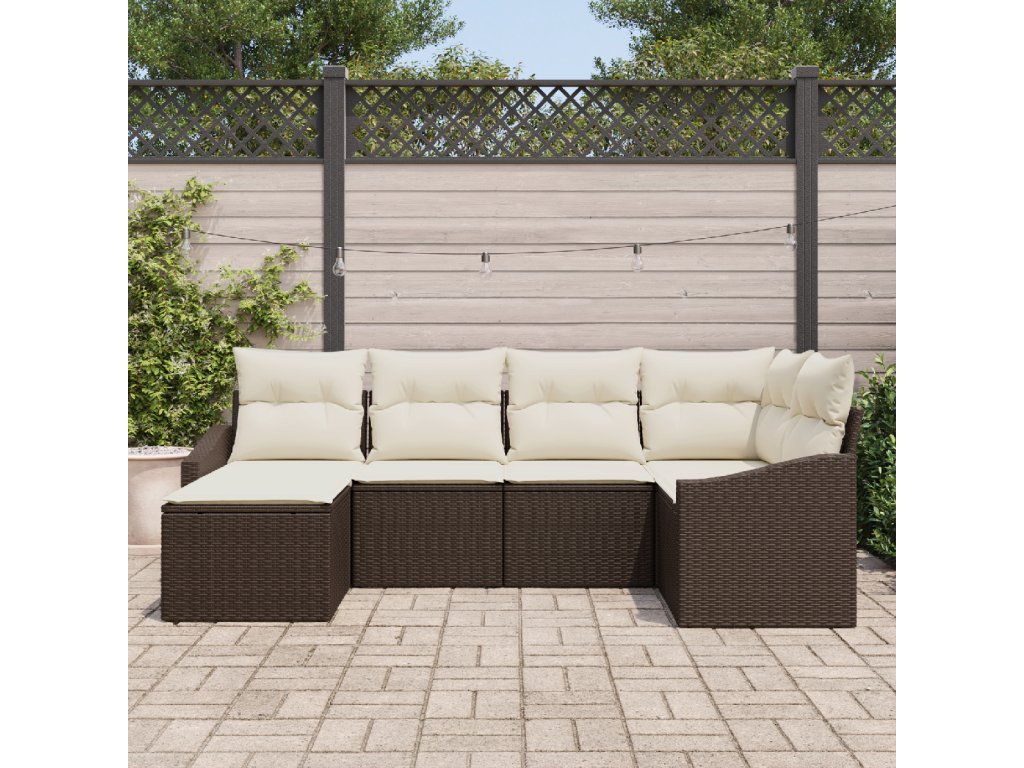 Set pohovek s polštářem 6 pcs Hnědá polyratan