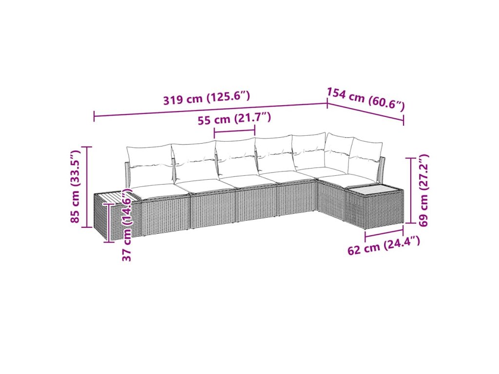Sada zahradních pohovek 6 pcs béžová a světle šedá Poly ratan