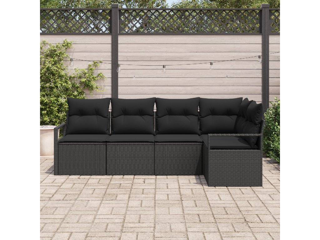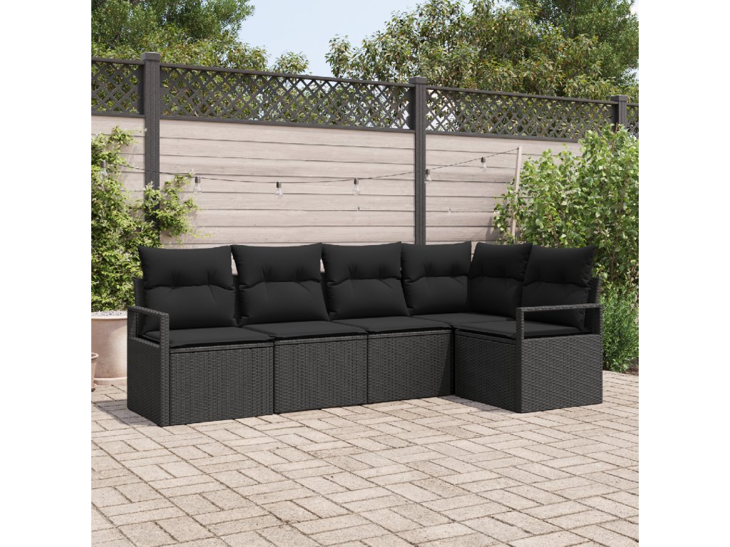 Set pohovek s polštářem s úložištěm 5 pcs Černá polyratan