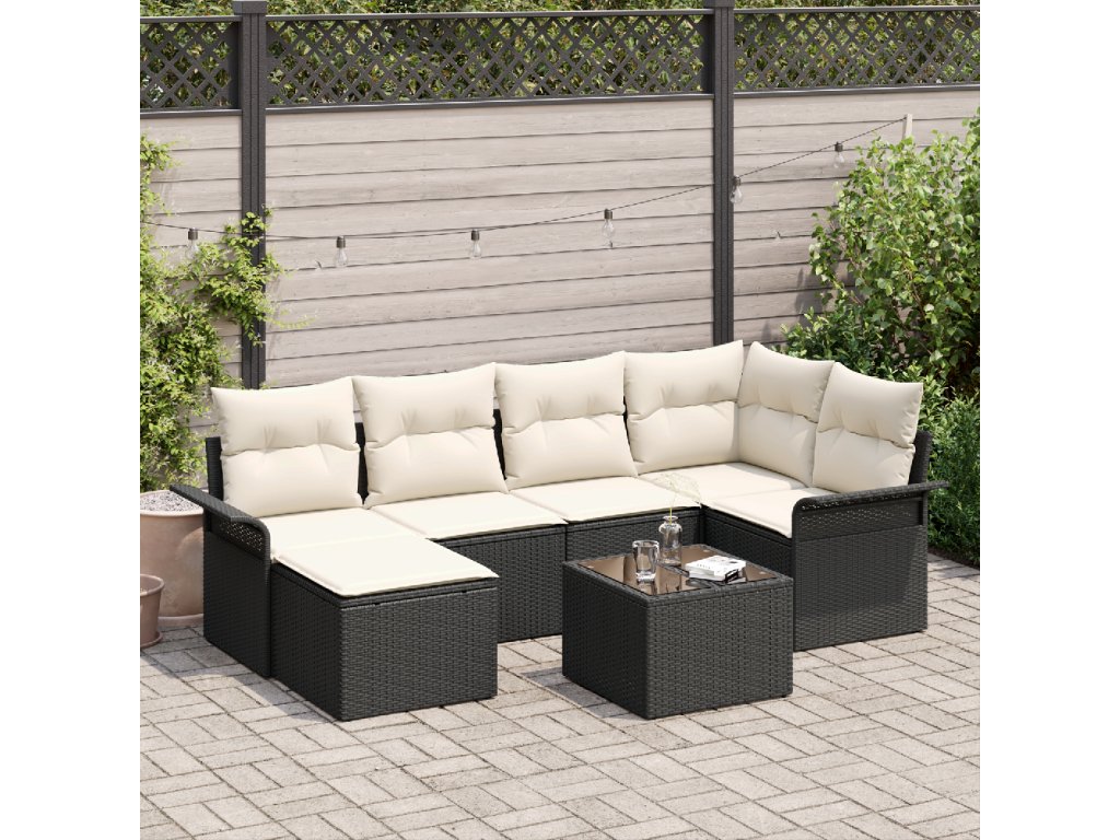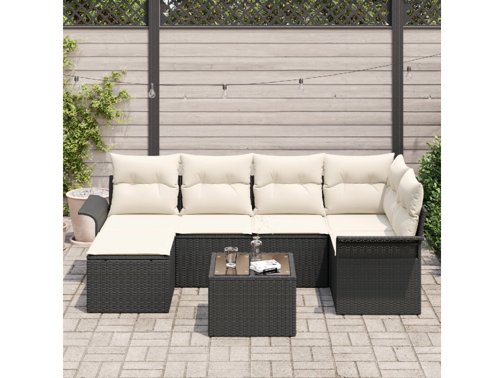 Sada zahradních pohovek s úložištěm 7 pcs Černá polyratan