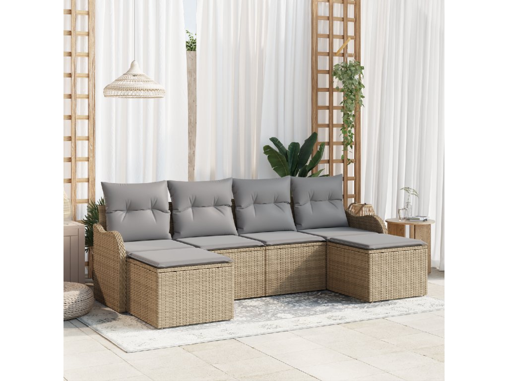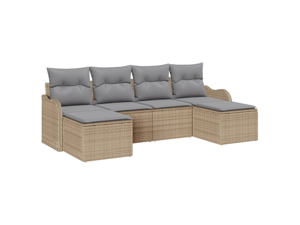 Sada zahradních pohovek s polštářem 6 pcs Béžová Poly ratan