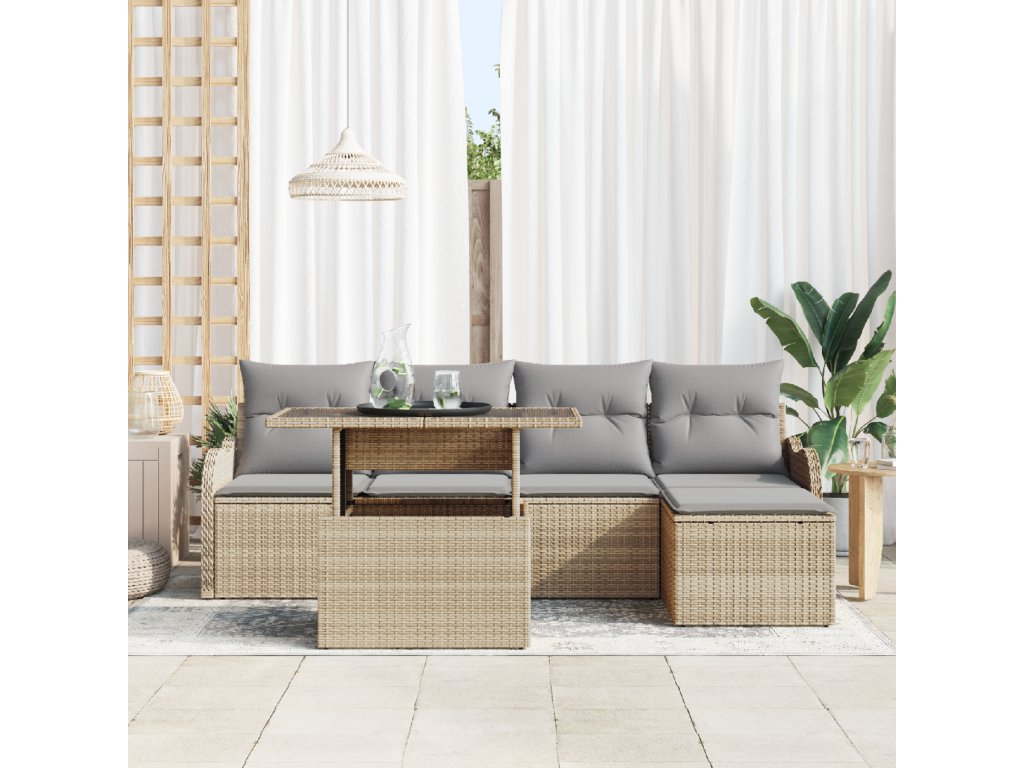 Sada zahradních pohovek s polštářem 6 pcs Béžová Poly ratan
