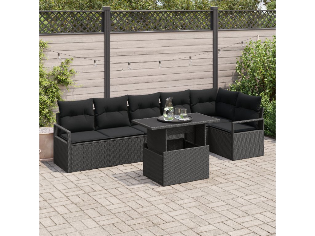 Sada zahradních pohovek s úložištěm 7 pcs Černá polyratan