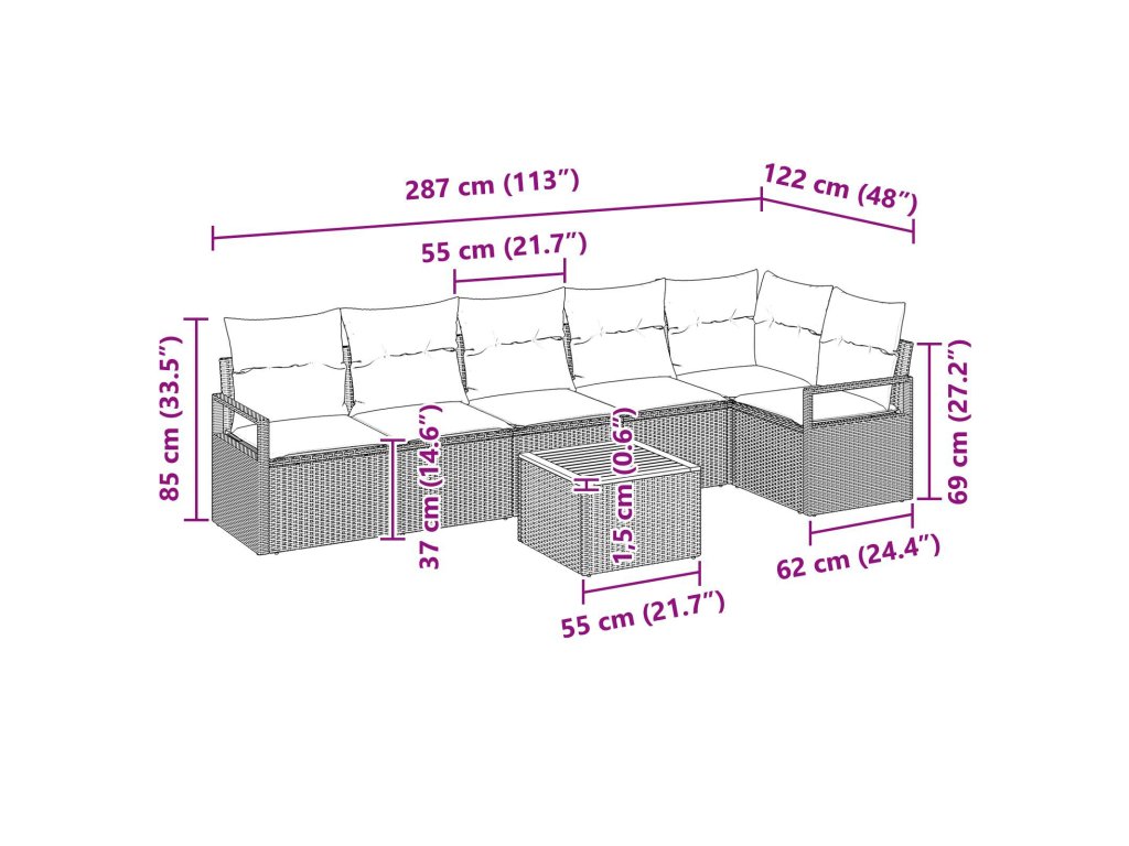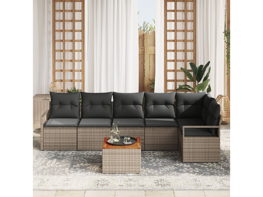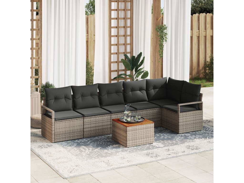 Sada zahradních pohovek s polštářem 7 pcs Šedá Poly ratan