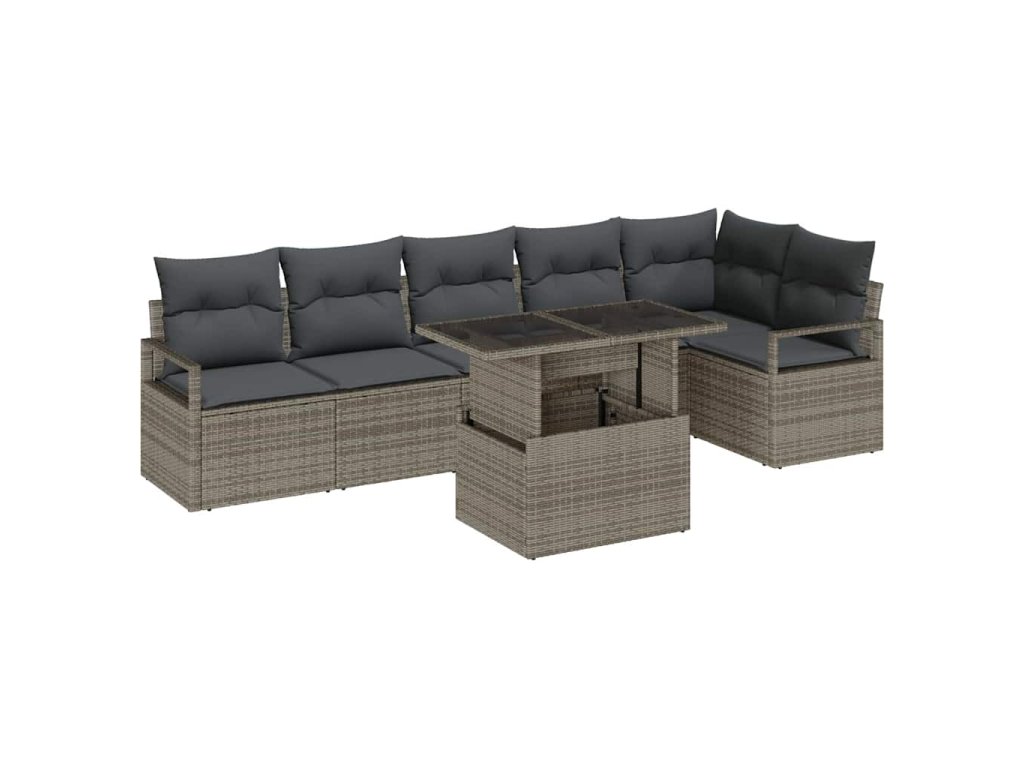 Sada zahradních pohovek s úložištěm 7 pcs Šedá Poly ratan