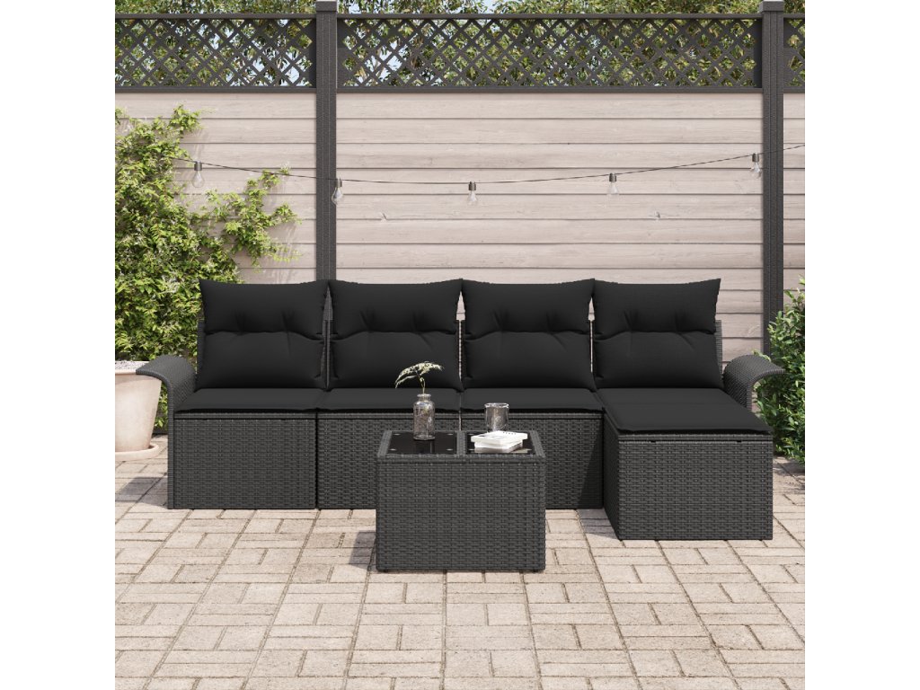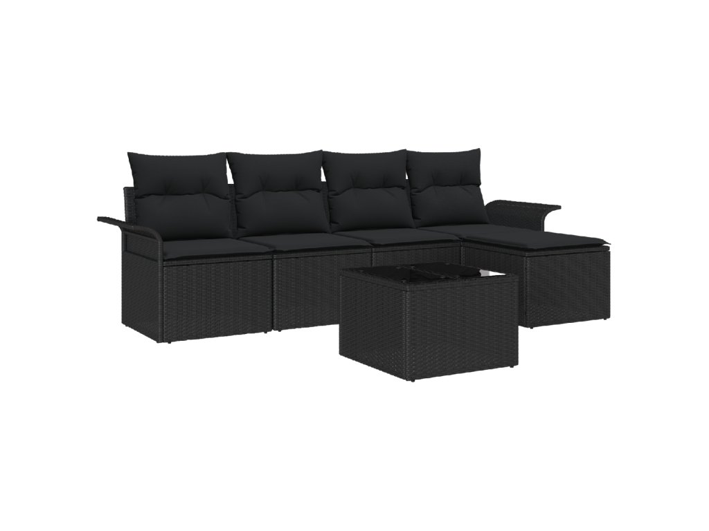 Sada zahradních pohovek s polštářem 6 pcs Černá polyratan