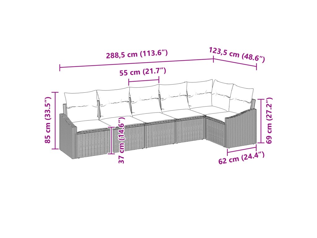 Set pohovek s polštářem 6 pcs Hnědá polyratan