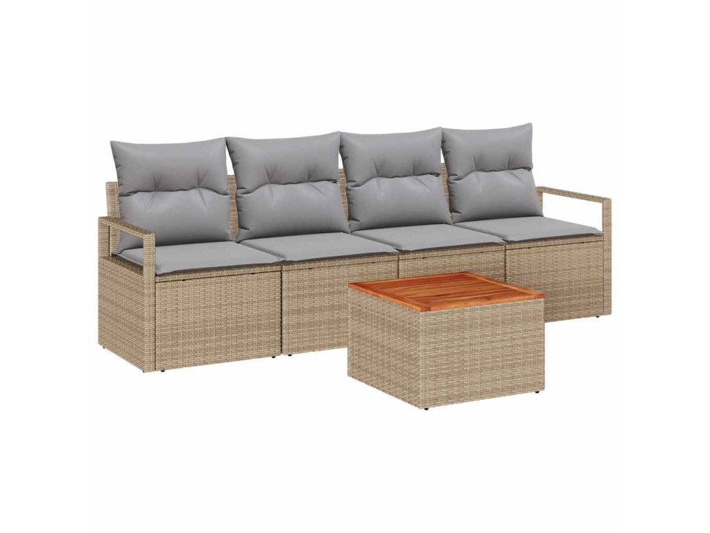 - Materiály: Vyrobeno z prémiového poly ratanového materiálu, práškově lakované oceli a masivního dřeva akácie, tato souprava gauče spojuje eleganci s odolností. Poly ratan zajišťuje odolnost vůči UV paprskům, což zaručuje dlouhotrvající živý vzhled. Práškově lakovaný ocelový rám poskytuje pevnost, zatímco povrch z akáciového dřeva dodává teplý a lákavý dotyk, který se bez námahy prolíná s jakýmkoli přírodním prostředím.