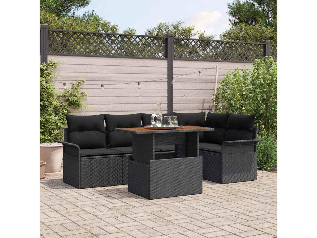 Sada zahradních pohovek s úložištěm 6 pcs Černá Poly ratan