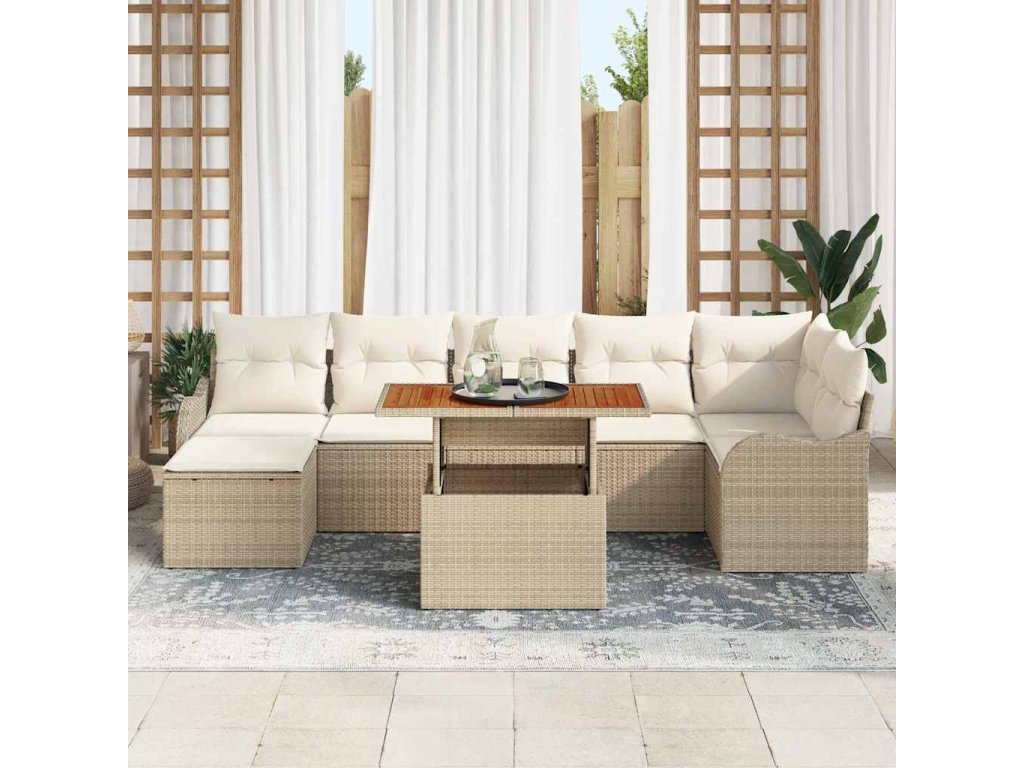 Sada zahradních pohovek s úložištěm 8 pcs Béžová Poly ratan