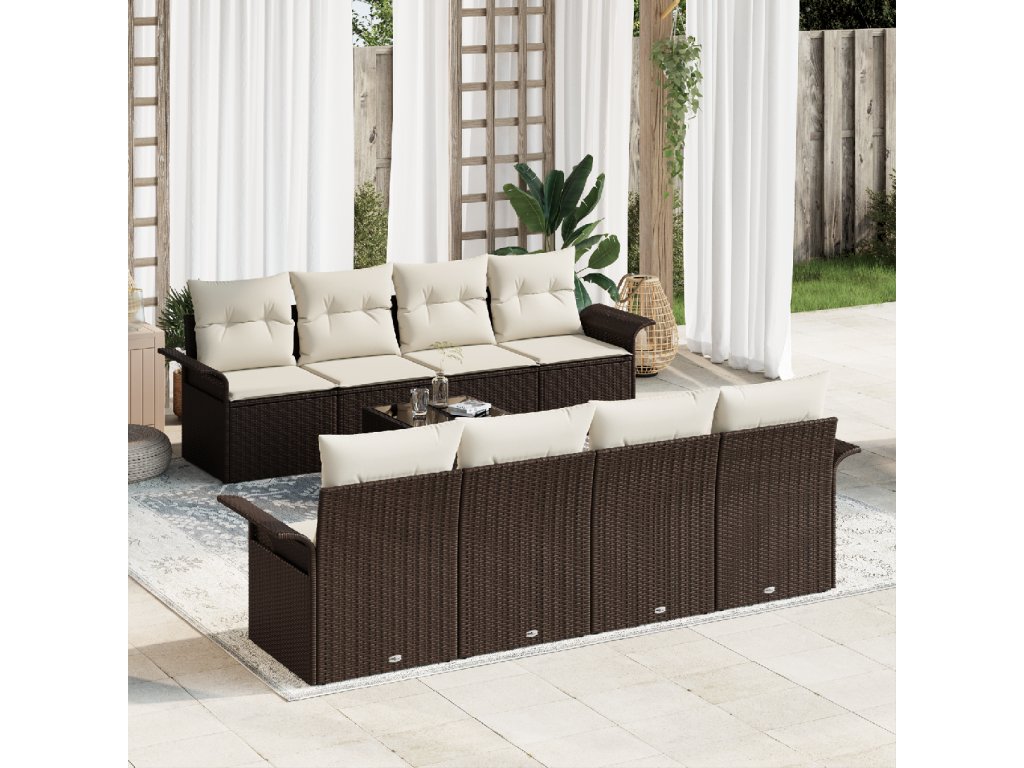 Sada zahradních pohovek s polštářem 9 pcs Hnědá a krémová