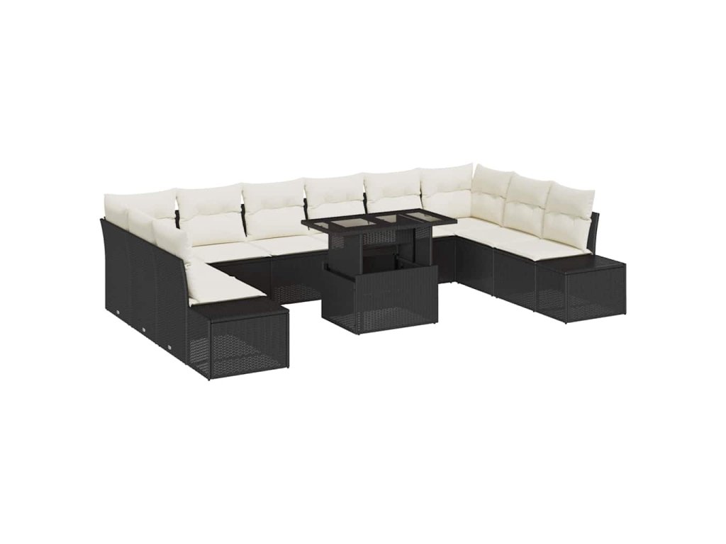Sada zahradních pohovek s úložištěm 11 pcs Černá Poly ratan