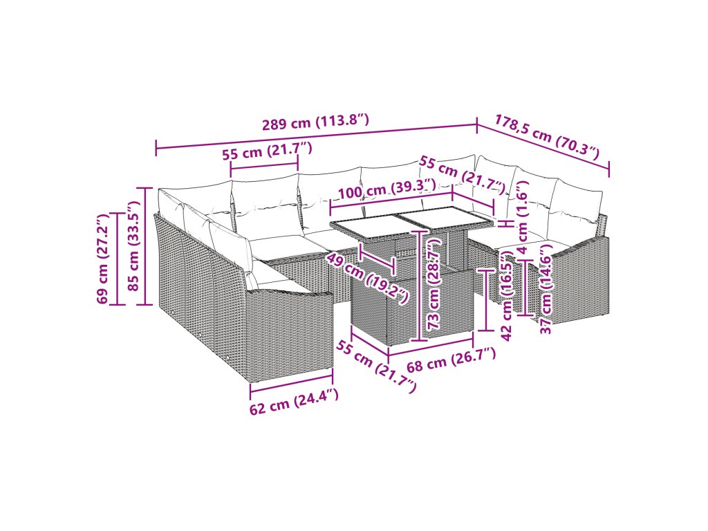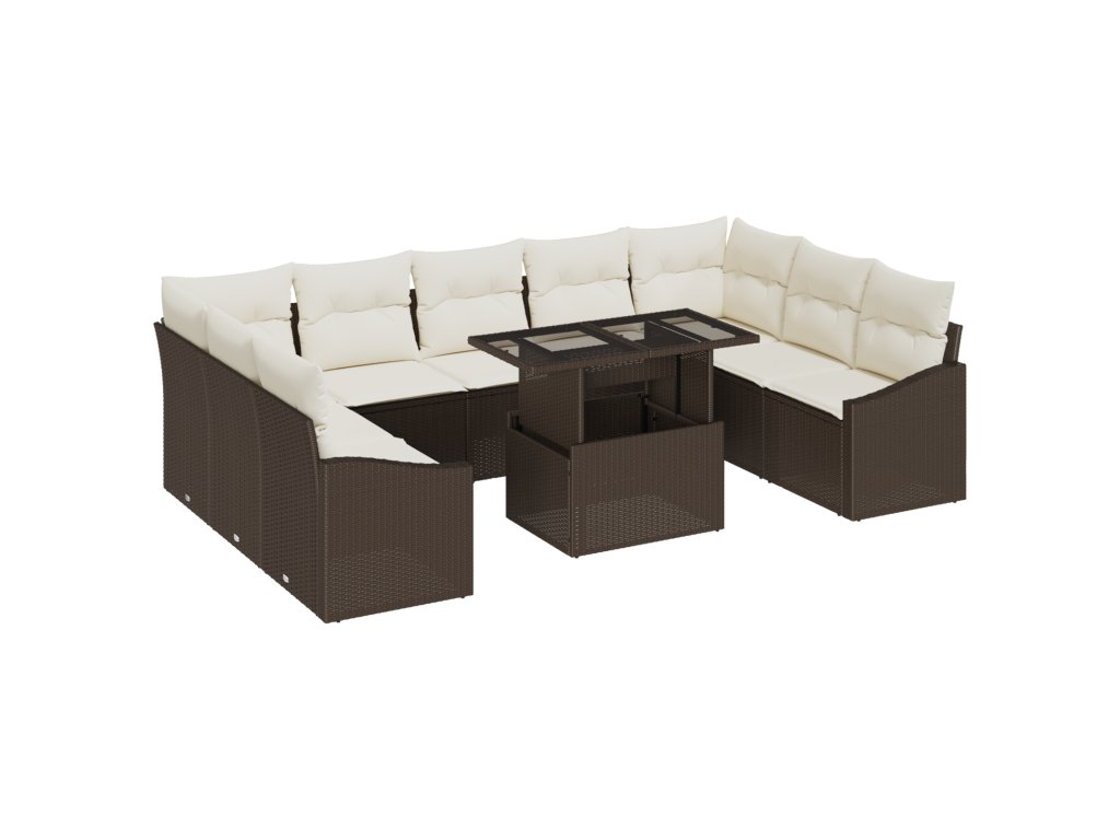 Set pohovek s polštářem 10 pcs Hnědá a krémová polyratan
