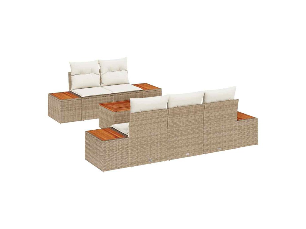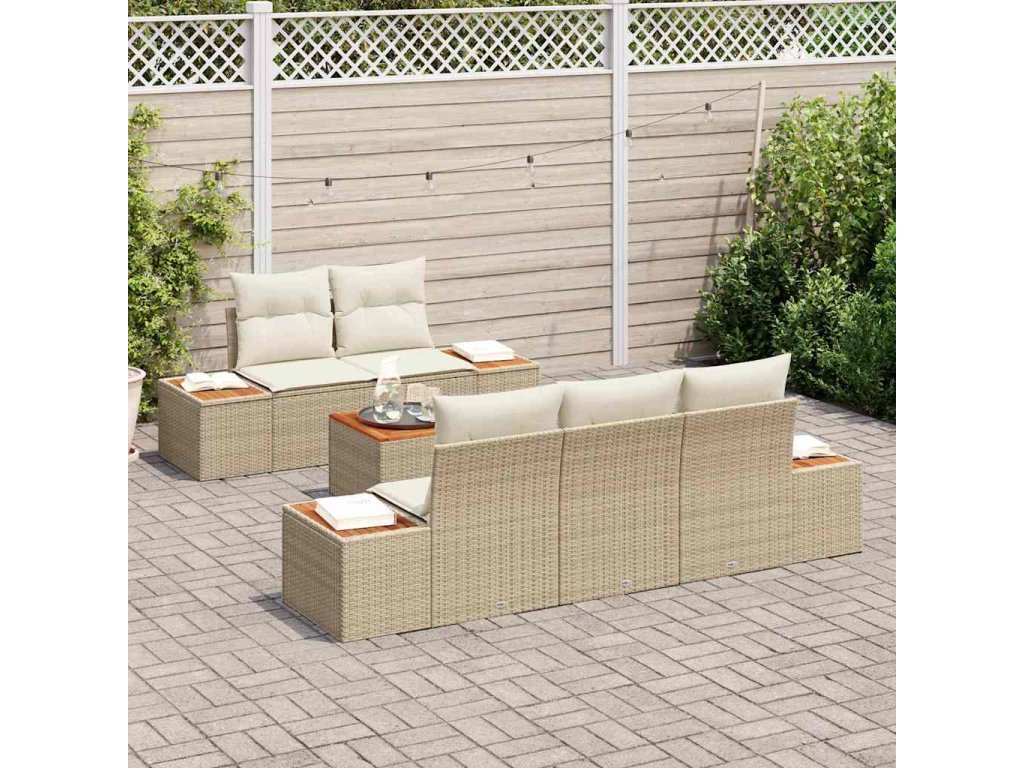 Sada zahradních pohovek s polštářem 6 pcs Béžová Poly ratan