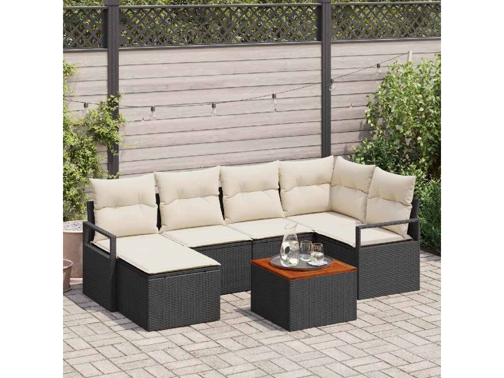 Sada zahradních pohovek s polštářem 7 pcs Černá Poly ratan